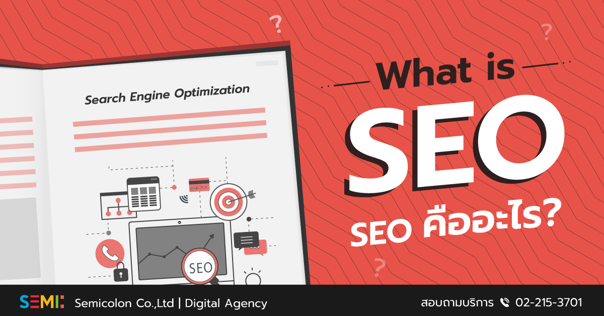 SEO หรือ Search Engine Optimization คือ การโปรโมทให้เว็ปไซต์ให้ขึ้นไปติดอันดับต้นๆใน Search Engine โดยจุดประสงค์ของการทำ SEO คือ การให้ผู้ใช้ Search Engine เหล่านั้นเข้าเว็ปไซต์